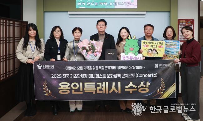 (한국글로벌뉴스 - 박소연 기자) 용인특례시는 23일 강원도 원주시에서 열린 ‘2025 문화정책 콘체르토(Concerto)’에서 최우수상을 수상했다고 25일 밝혔다.