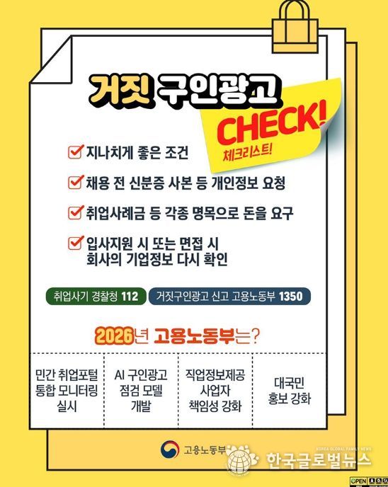 (한국글로벌뉴스 - 박경희 기자) ■ 거짓 구인광고 체크리스트!