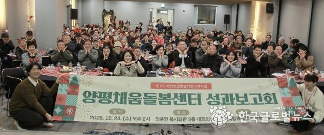(한국글로벌뉴스 - 박소연 기자) 양평군은 지난 24일 청운면 다목적복지회관에서 보건복지부 공모사업으로 추진 중인 ‘사회보장 특별지원구역 사업’ 성과 공유회를 개최했다고 밝혔다.
