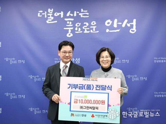 (한국글로벌뉴스 - 박소연 기자) 안성시는 지난 12월 24일, ㈜그린씨알피로부터 1,000만 원 기부금을 전달받았다고 밝혔다.