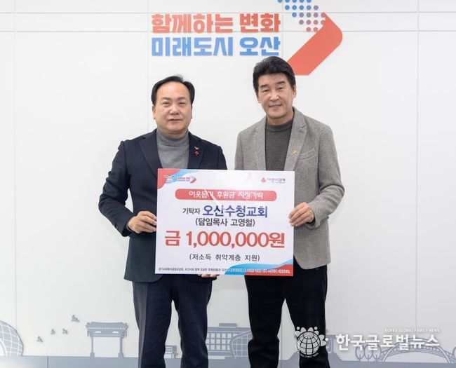 (한국글로벌뉴스 - 박소연 기자) 오산시는 지난 26일 오산수청교회가 희망2026나눔캠페인에 동참해 관내 취약계층 지원을 위한 성금 100만 원을 기탁했다고 밝혔다.