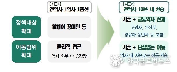 '2단계 전역사 10분내 환승 추진…시민불편 집중 13개역 대상, 교통약자 환승시간 58% 감축'