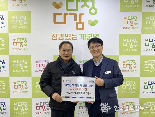 개군면 체육회 유연송 회장은 지역 내 어려운 이웃을 돕기 위해 성금 100만 원을 기부하며 개군면의 새해 첫 기부자로 나눔에 동참했다. 이번 성금은 지역 내 취약계층을 위한 복지 지원에 사용될 예정이다.