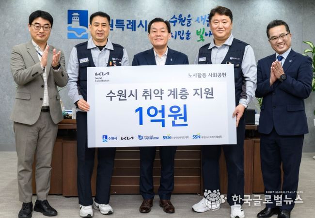 (한국글로벌뉴스 - 박소연 기자) 기아(주) 노사가 “수원시 취약계층 지원에 사용해달라”며 1억 원을 한국사회복지협의회에 기탁했다. 기부금은 수원시사회복지협의회를 통해 수원시 복지사각지대와 취약계층 지원에 사용될 예정이다.