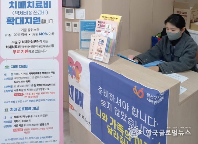 (한국글로벌뉴스 - 박소연 기자) 수원 권선구보건소 치매안심센터가 수원윌스기념병원 3층에서 ‘건강-인, 치매안심-온(건강-in, 치매안심-on)’ 치매 사업 안내 부스를 연중 운영한다.