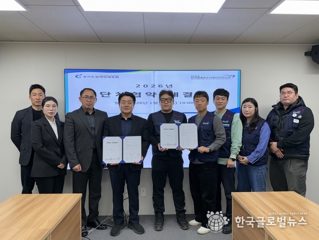 (한국글로벌뉴스 -박소연 기자) 경기도장애인체육회(회장: 김동연 경기도지사)와 전국공공운수사회서비스노동조합 경기지역지부 경기도장애인체육회분회는 1월 8일, 기존 단체협약 조문 일부를 개정하고, 신규 조문을 추가한 단체협약을 체결했다.