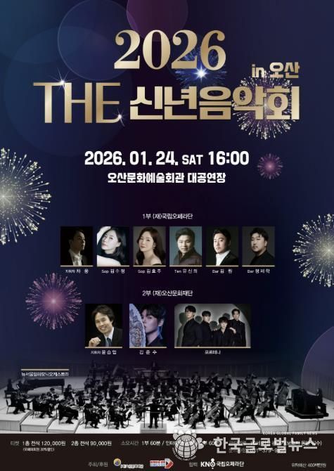 (한국글로벌뉴스 - 박소연 기자) (재)오산문화재단은 2026년 1월 24일 오후 4시, 오산문화예술회관 대공연장에서 '2026 THE 신년음악회 in 오산'을 개최하며 시민들에게 새해 첫 문화 인사를 전한다.