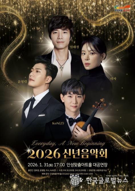 (한국글로벌뉴스 - 박소연 기자) 안성맞춤아트홀이 2026년 새해의 문을 여는 첫 기획공연 ‘2026 신년음악회’를 오는 1월 31일 오후 5시, 안성맞춤아트홀 대공연장에서 선보인다.