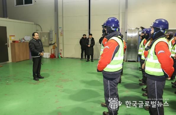 이권재 시장은 이른 아침 대행업체를 찾아 환경미화원들과 간담회를 갖고, 혹한기 작업에 따른 안전사고 예방과 건강관리의 중요성을 강조하며 현장 근무자들의 노고에 감사의 뜻을 전했다.