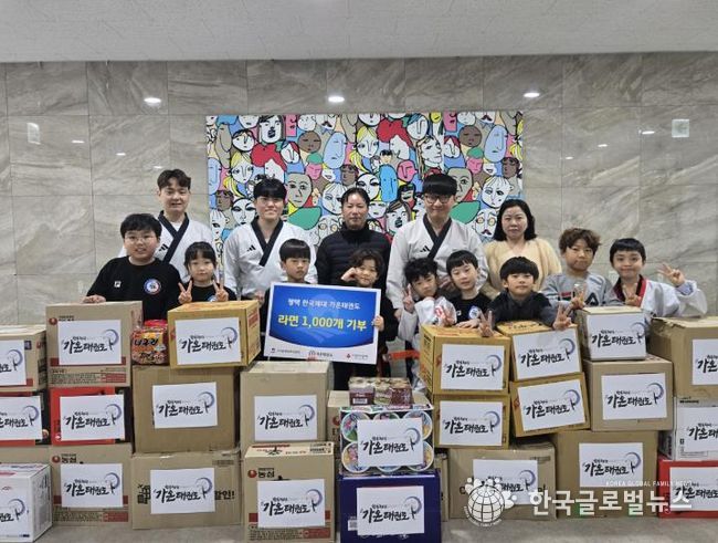 (한국글로벌뉴스 - 박소연 기자) 평택시 고덕동에 있는 한국체대 가온태권도장에서 지난 15일 원생들이 십시일반 모은 라면 1000개를 고덕동 행정복지센터에 전달했다.