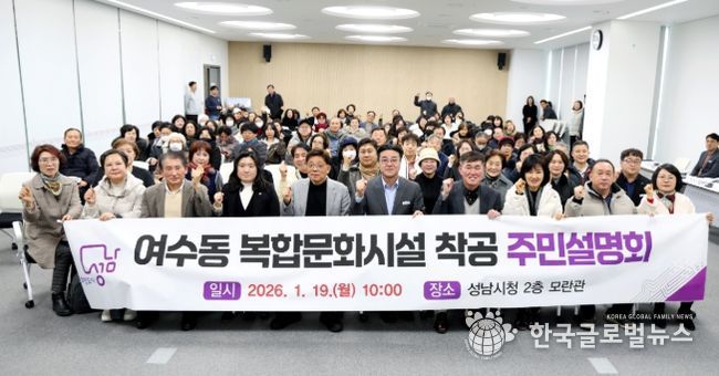 (한국글로벌뉴스 - 박소연 기자) 성남시의회는 19일 성남시청 2층 모란관에서 열린 ‘여수동 복합문화시설 착공 주민설명회’에 참석했다. 이번 설명회는 여수동 복합문화시설 조성 사업의 본격적인 착공을 앞두고 추진 경과와 향후 계획을 주민들과 공유하기 위해 마련됐다.