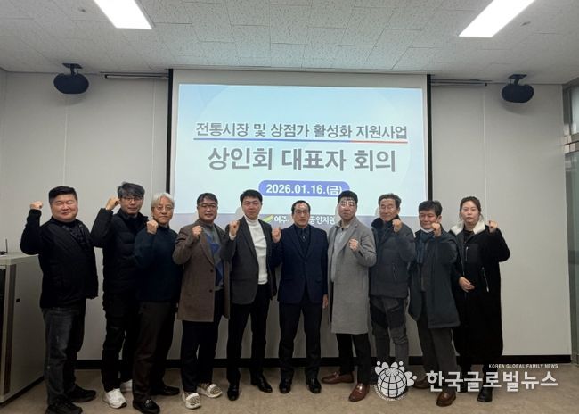 (한국글로벌뉴스 - 박종욱 기자) 여주시 소상공인지원센터는 지난 1월 16일 센터 회의실에서 상인회 대표자 회의를 개최하고, 전통시장 및 상점가 활성화 지원사업을 비롯한 2026년 여주시소상공인지원센터 주요 사업안내와 지역상권 활성화 방안에 대해 논의했다.