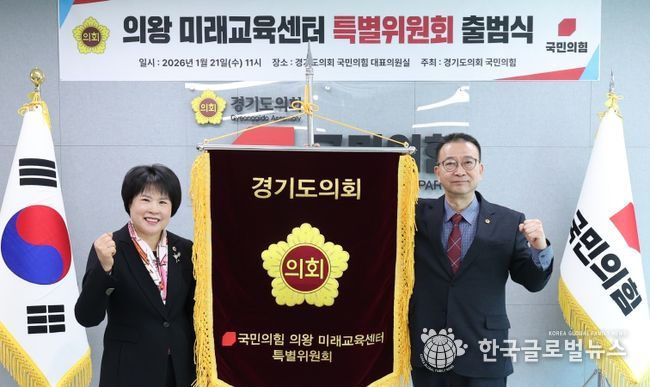 (한국글로벌뉴스 - 박소연 기자) 경기도의회 국민의힘(대표의원 백현종)은 21일 ‘의왕 미래교육센터 특별위원회’를 출범하고 특별위원장에 서성란(의왕2) 의원을 임명했다.