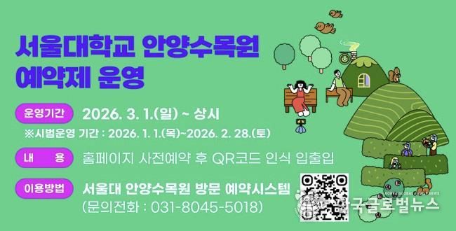 (한국글로벌뉴스 - 박소연 기자) 58년 만에 시민에게 상시 개방된 서울대 안양수목원이 오는 3월부터 사전 예약제로 운영된다.