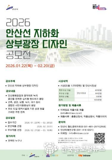 이번 공모전은 안산선 지하화 공식 누리집 개편에 맞춰 진행되는 시민 참여 행사다. 안산선 지하화에 관심 있는 국민이면 누구나 참여 가능하다. 이달 22일부터 내달 20일까지 약 한 달간 응모할 수 있다. 공모전 관련 세부 내용은 안산선 지하화 공식 누리집을 통해 확인할 수 있다.
