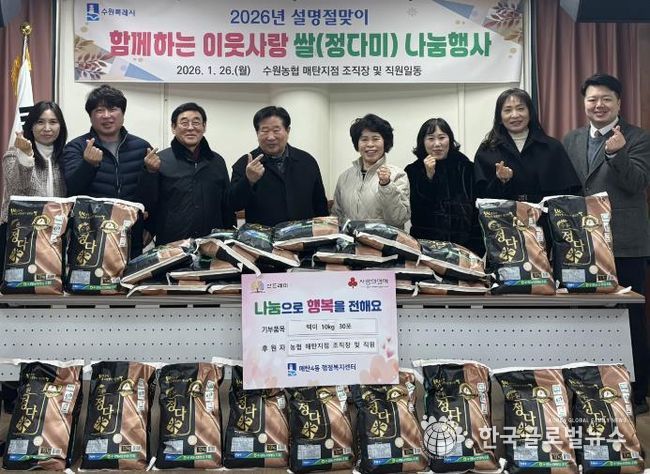 최종천 수원농협 매탄지점 관내이사는 “민족 대명절인 설을 앞두고 임직원들의 정성을 담아 준비했다”며 “농협 쌀로 마련한 이번 나눔이 어려운 이웃들에게 실질적인 위로와 희망이 되기를 바란다”고 전했다.