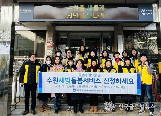 ‘수원새빛돌봄’ 서비스는 도움이 필요하지만 제도권 밖에 있어 지원받지 못하는 위기 가구에게 생계, 의료, 주거, 돌봄 등 맞춤형 복지서비스를 제공하는 수원시의 통합 돌봄 서비스이다.