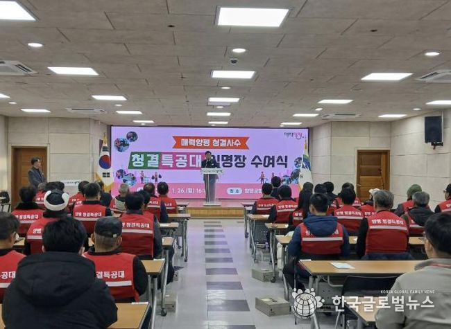 (한국글로벌뉴스 - 박소연 기자) 양평군은 지난 26일 군청 대회의실에서 12개 읍·면 청결 특공대원 32명에게 임명장을 수여했다.