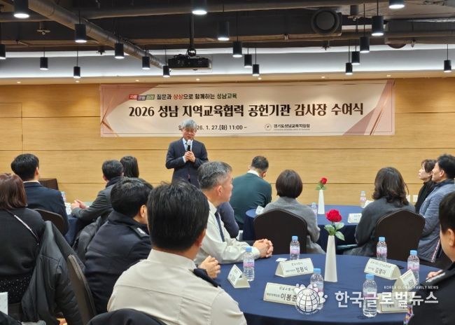 (한국글로벌뉴스 - 박소연 기자) 경기도성남교육지원청은 1월 27일 스카이파크 호텔에서 '성남 지역교육협력 공헌기관 감사장 수여식'을 개최하여 성남교육 발전을 위해 협력해 온 지역교육협력기관 22곳에 감사의 뜻을 전했다.