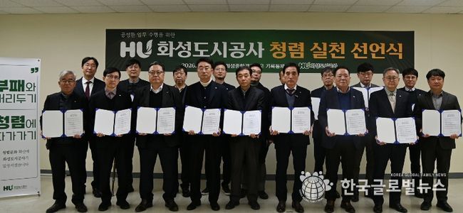 (한국글로벌뉴스 - 박소연 기자) 화성도시공사는 1월 26일 공사 회의실에서 간부급 고위직을 대상으로 '청렴 실천 선언식'을 개최하고, 공정하고 투명한 업무수행을 위한 청렴 실천 의지를 공식적으로 선언했다.
