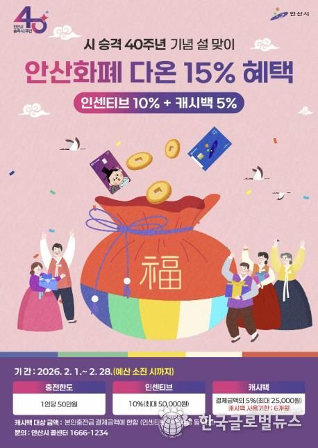 (한국글로벌뉴스 - 박소연 기자) 안산시는 시 승격 40주년을 기념하고 시민들의 설 명절 부담을 덜어주고자 지역화폐 ‘다온’의 소비 혜택을 강화한다고 30일 밝혔다.