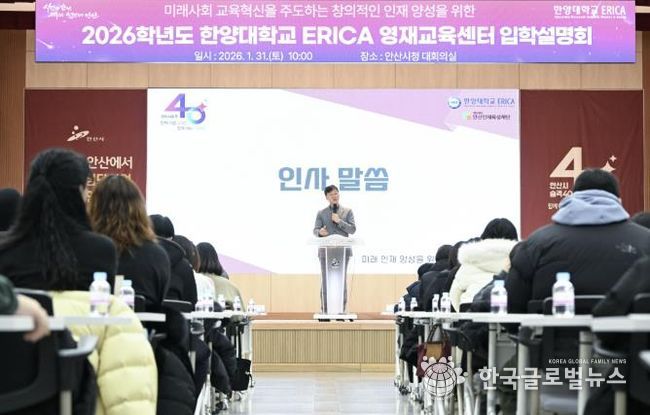 (한국글로벌뉴스 - 박소연 기자) 안산시는 지난달 31일 안산시청 대회의실에서 2026학년도 한양대학교 ERICA 영재교육센터 입학설명회를 개최했다고 2일 밝혔다.