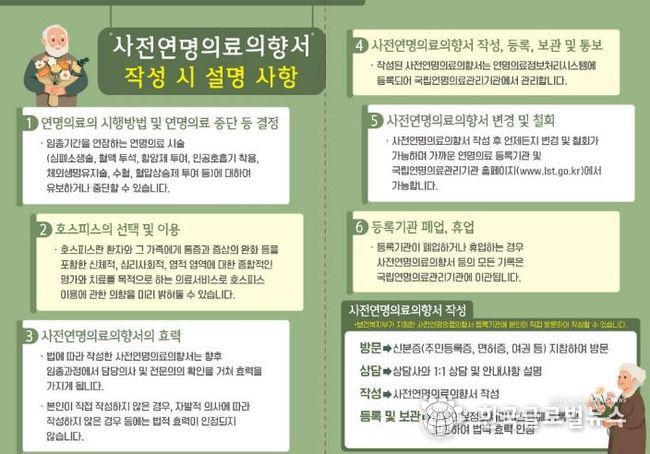 19세 이상 성인이라면 누구나 사전연명의료의향서를 통해 연명의료 중단에 관한 본인 의사를 사전에 문서로 남길 수 있다.