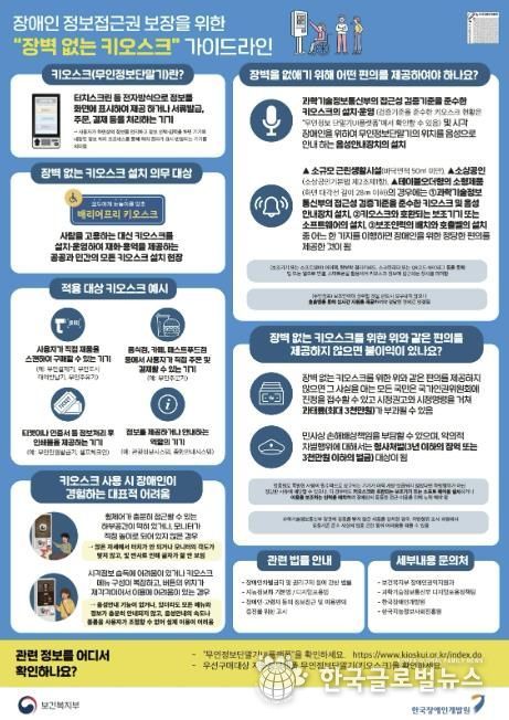 최근 개정된 ‘장애인차별금지 및 권리구제 등에 관한 법률’ 시행령에 따라, 공공과 민간에서 키오스크(무인정보단말기)를 설치·운영하는 경우 접근성 검증 기준을 충족하는 기기를 사용하고, 시각장애인을 위한 음성 안내 장치를 갖춰야 한다.