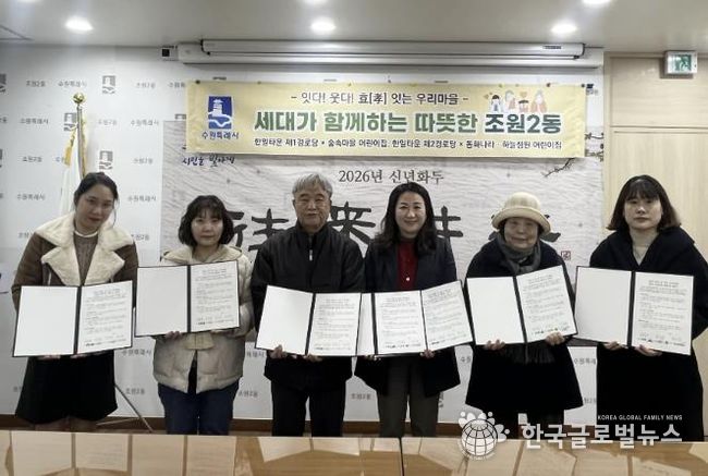 (한국글로벌뉴스 - 박소연 기자) 수원시 장안구 조원2동은 지난 3일, 행정복지센터 2층 소회의실에서 세대 간 교류 활성화 및 공동체 의식 함양을 위한 경로당–어린이집 결연식을 개최했다.
