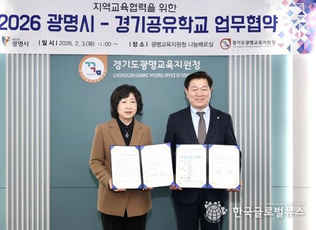 (한국글로벌뉴스 - 박소연 기자) 광명교육지원청과 광명시는 2월 3일, 광명교육지원청 나눔배로실에서 지역사회 교육 자원을 연계한 지역교육협력 체계 구축 및 ‘경기공유학교’ 운영 활성화를 위한 업무협약을 체결했다.