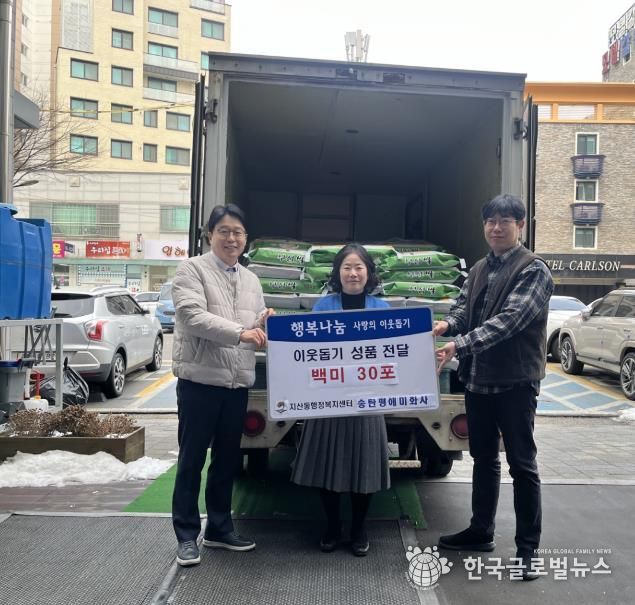 (한국글로벌뉴스 - 박소연 기자) 송탄평애미화사는 지난 4일 설 명절을 맞이하기 위하여 평택시 지산동 행정복지센터에 관내 취약계층을 위한 쌀 30포를 기부했다.