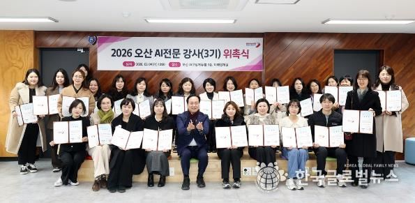 (한국글로벌뉴스 - 박소연 기자) 오산시는 지난 4일 오산AI코딩에듀랩 3층 미래인재실에서 『2026년 오산 AI전문 강사 3기 위촉식』을 개최했다고 밝혔다.