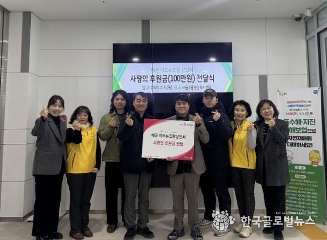 (한국글로벌뉴스 - 박소연 기자) 배곧 아브뉴프랑 상인회는 지난 2월 5일 배곧2동 행정복지센터를 찾아 배곧2동 지역사회보장협의체에 후원금 100만 원을 기탁했다.
