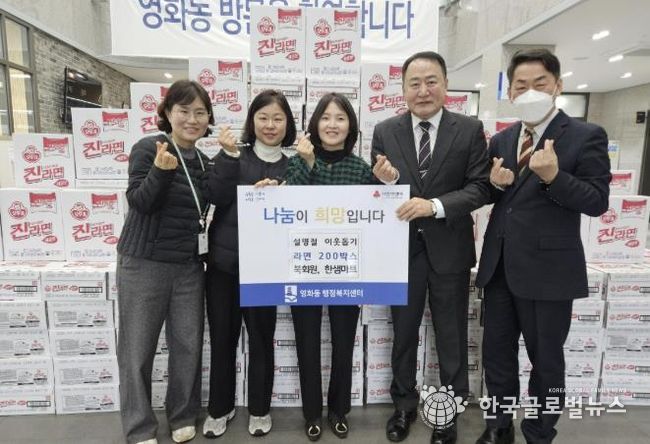 영화동 행정복지센터는 기부된 라면 200박스를 설 연휴 전까지 관내 저소득 가정, 독거노인 등 생활이 어려운 이웃에게 신속히 전달할 계획이다.