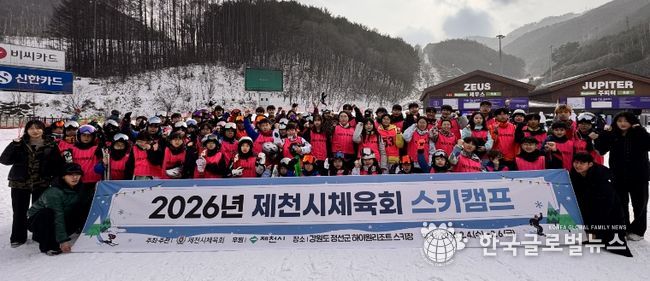 (한국글로벌뉴스 - 박지형 기자) 제천시체육회(회장 안성국)는 관내 초등학생과 중학생 80명을 대상으로 지난 2월 4일부터 6일까지 2박 3일간 강원도 하이원리조트 스키장에서 ‘2026 제천시체육회 스키캠프’를 성황리에 개최했다.