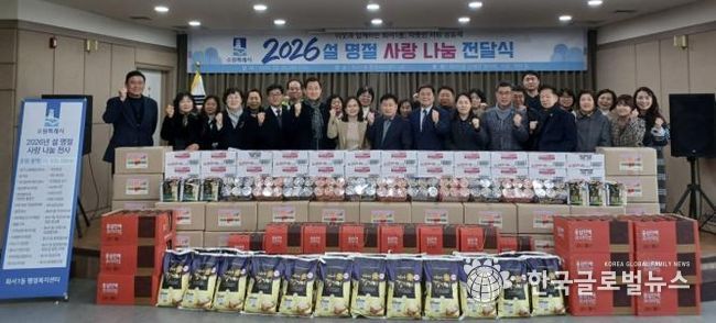 (한국글로벌뉴스 - 박소연 기자) 수원시 팔달구 화서1동은 지난 5일, 설 명절을 맞아 지역사회 이웃들에게 따뜻한 사랑을 전하는 '설 명절 사랑 나눔 전달식'을 진행했다.