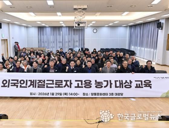 (한국글로벌뉴스 - 박소연 기자) 양평군은 지난 1월 29일 오후 2시부터 5시까지 양동면 문화센터 3층 다목적회관에서 ‘2026년도 외국인 계절근로자 고용농가 대상 교육’을 실시했다.