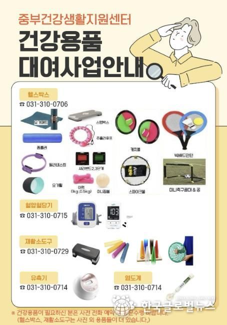 (한국글로벌뉴스 - 박소연 기자) 시흥시 중부건강생활지원센터는 시민의 건강생활 실천을 돕기 위해 헬스박스, 혈압ㆍ혈당, 염도계, 재활 소도구, 유축기 등 다양한 건강용품 대여 사업을 운영하고 있다.