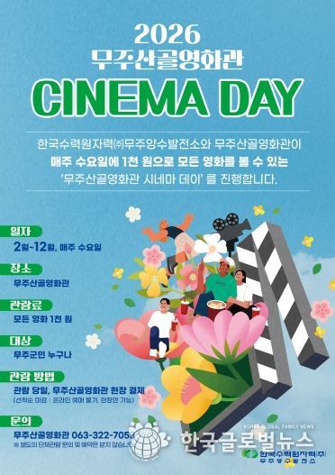 무주군에 따르면 ‘시네마 데이’는 지난 2025년 3월부터 매월 셋째 주 수요일에 운영돼 총 41회, 587명이 관람했다. 올해는 매주 운영으로 횟수가 7회 이상 확대돼 군민들이 일상에서 문화를 즐기는 좋은 기회가 될 것으로 기대가 된다.