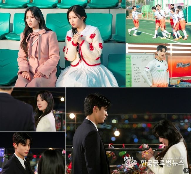 이로써 은호와 강시열의 로맨스 향방에 귀추가 주목되는 가운데, 이날 공개된 사진 속 ‘망생’ 탈출을 넘어 ‘망생’ 적응에 나선 두 사람의 모습이 흥미를 유발한다. 친구 현우석(장동주 분)과 운명이 바뀌면서, 해외 유명 구단에서 국내 4부 리그 소속이 된 강시열. 하지만 언젠가 되돌아갈 날만 꿈꾸며 ‘대흥시민구단’의 감독과 선수들, 유니폼조차 거들떠보지 않던 그가 필드로 다시 돌아온다. 왼팔에 두른 주장 완장은 물론, 경기장과 라커룸의 온도차 카리스마가 시선을 사로잡는다. 여기에 강시열의 ‘본업 모먼트’를 1열에서 직관 중인 은호와 팔미호도 눈길을 끈다. 두 손을 꼭 쥐고 조마조마한 표정으로 경기를 지켜보는 진심 가득한 응원 모드가 미소를 자아낸다.