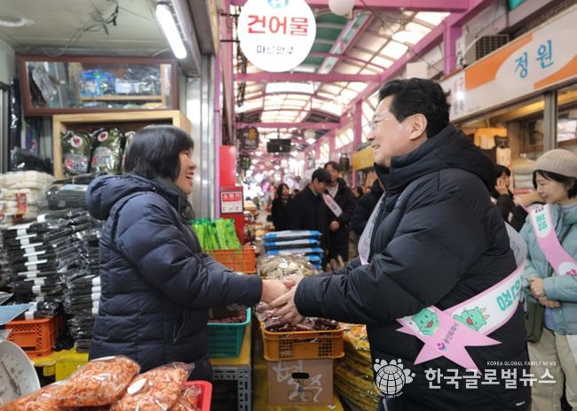 (한국글로벌뉴스 - 박소연 기자) 이상일 용인특례시장은 10일 설을 앞두고 용인중앙시장에서 장을 보며 상인과 시민에게 명절 인사를 하고, 수지구 성복동에 있는 장애인 복지시설 ‘해오름의 집’을 위문했다.