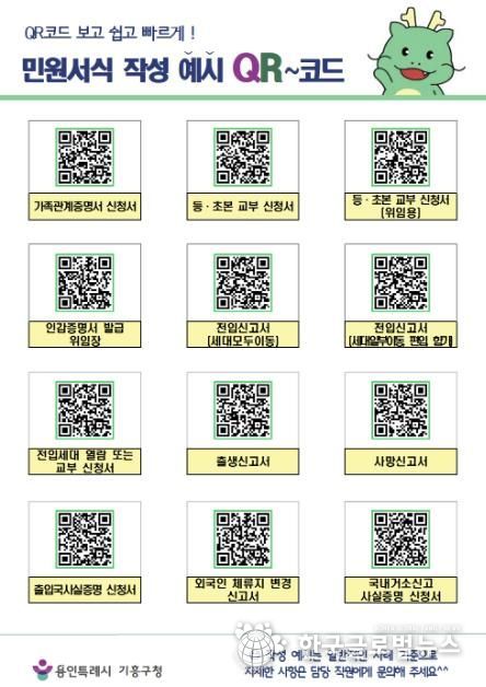 QR코드는 기흥구청 민원지적과와 기흥구 내 15개 동 행정복지센터 민원실에 게시됐다.