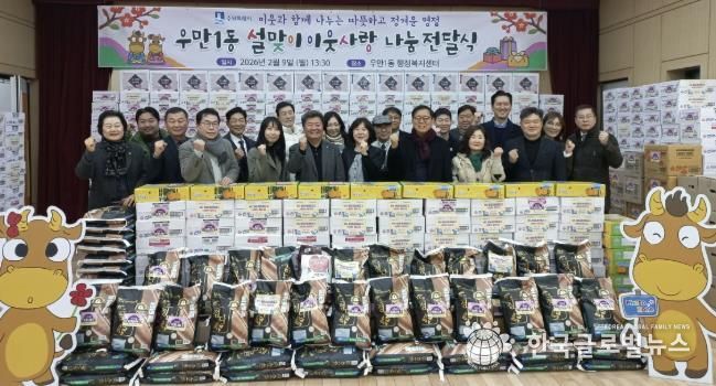 (한국글로벌뉴스 - 박소연 기자) 수원시 팔달구 우만1동은 지난 2월 9일, 설 명절을 앞두고 ‘설맞이 이웃사랑 나눔 전달식’을 개최하며 이웃과 정을 나누는 훈훈한 시간을 마련했다.