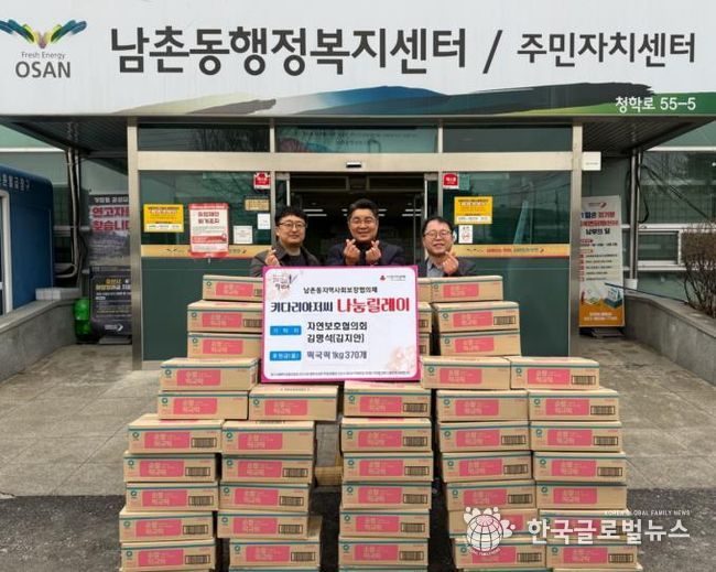 (한국글로벌뉴스 - 박소연 기자) 오산시 남촌동은 지난 10일 설 명절을 맞아 남촌동 자연보호협의회 김명석 회장이 관내 저소득층 및 취약계층을 위해 떡국 떡 1kg 370개를 기탁했다고 밝혔다.
