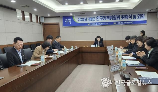 (한국글로벌뉴스 - 박소연 기자) 가평군은 12일 제1회 인구정책위원회를 열고 ‘인구감소지역 대응 시행계획’을 심의하며 인구 유입 전략 사업 추진에 박차를 가하기로 했다. 본청 소회의실에서 열린 이날 위원회에는 김미성 부군수를 위원장으로 한 인구정책위원 10명이 참석했다.