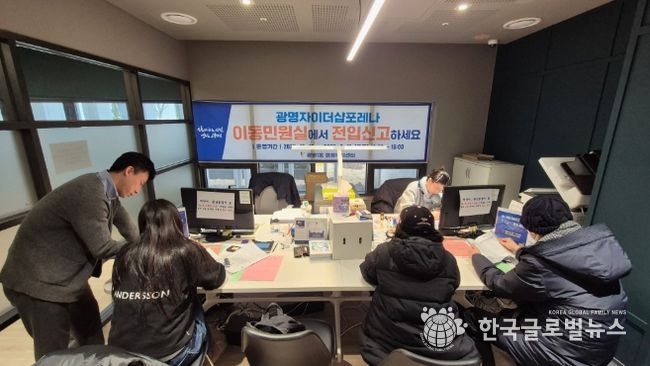 (한국글로벌뉴스 - 박소연 기자) 광명시 광명1동 행정복지센터(동장 김숙자)는 지난 12월 15일부터 2월 13일까지 2개월간 광명자이더샵포레나 1단지 커뮤니티센터에서 ‘전입 원스톱 서비스(이동민원실)’ 운영을 성공적으로 마쳤다.