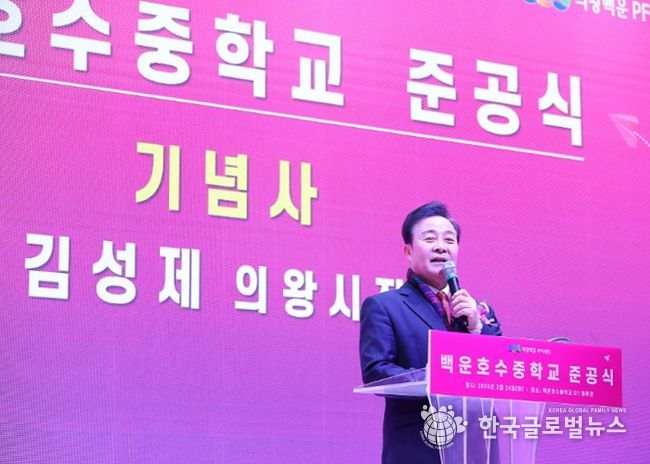 (한국글로벌뉴스 - 박소연 기자) 의왕시 백운밸리 지역에 신설된 백운호수중학교의 준공식이 24일 백운호수중학교 체육관에서 개최됐다.
