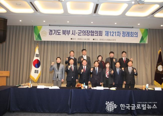 (한국글로벌뉴스 - 박소연 기자) 경기도 북부 시ㆍ군의장협의회 제121차 정례회의가 2026년 2월 24일 11시 가평군 청평면에 위치한 마이다스 호텔&리조트에서 개최됐다.