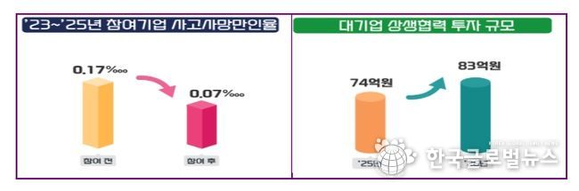 대기업과 정부의 지원을 받은 사업장은 안전한 일터로 거듭나고 있다. 지난 3년간 사업에 참여한 기업 10,453곳의 평균 사고사망만인율은 0.07‱로 참여 이전(0.17‱)보다 절반 이하로 감소했다.