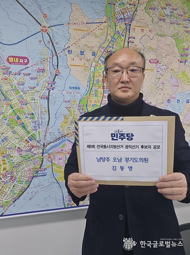 (한국글로벌뉴스 -박소연 기자) 경기도의회 건설교통위원회 김동영 부위원장(더불어민주당, 남양주 오남)이 오는 6월 지방선거에서 남양주시 제4선거구(오남읍) 경기도의원 재선 도전을 공식 선언하였다.